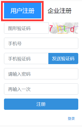 ①个人注册:选择用户注册,通过个人手机号验证完成注册。