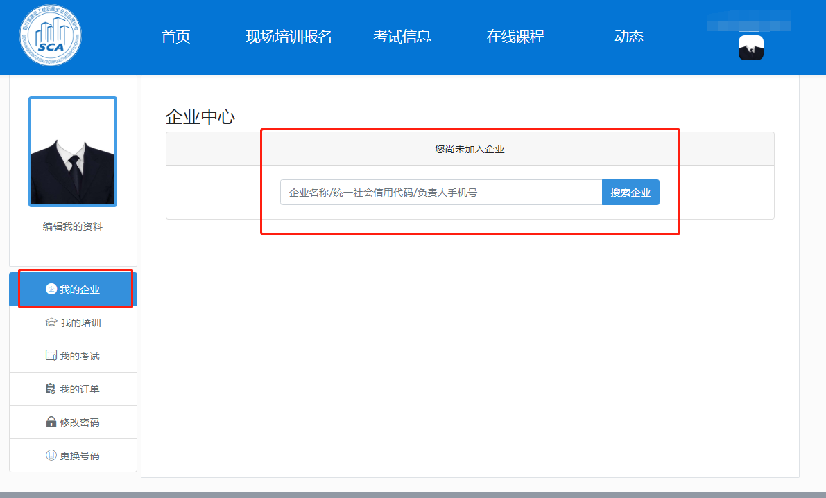 点击个人中心“我的企业”,右方边框里输入企业名称申请加入该企业。