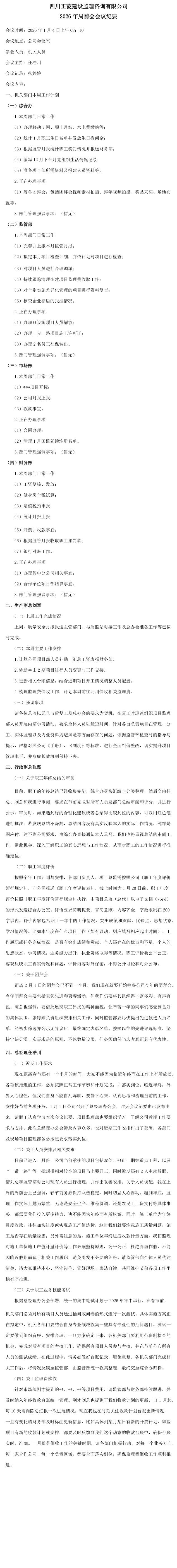 2026年1月4日周会议纪要